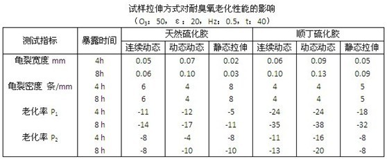 橡膠試樣的拉伸可分為靜態(tài)拉伸和動態(tài)拉伸。動態(tài)拉伸又有兩種方式,即連續(xù)的動態(tài)拉伸和間斷的動態(tài)拉伸。臭氧老化試驗箱GB/T13642-1992標(biāo)準(zhǔn)為簡便敘述和區(qū)分,將國際標(biāo)準(zhǔn)規(guī)定的連續(xù)動態(tài)方式簡稱為A式,將間斷動態(tài)拉伸方式簡稱為B式,其中又將它們劃分為a法和b法兩種暴露方法。試驗拉伸方式不同,試驗結(jié)果是不一樣的,下表給出了不同的拉伸方式對試樣耐臭氧老化性能影響的試驗結(jié)果。從表中可見,在相同的暴露時間下,試樣在間斷動態(tài)拉伸下試驗比連續(xù)動態(tài)拉伸下試驗的臭氧龜裂較嚴(yán)重,拉伸強(qiáng)度和扯斷伸長率也下降較大,而連續(xù)動態(tài)拉伸的試樣又比靜態(tài)拉伸的試樣臭氧老化較嚴(yán)重?梢,動態(tài)拉伸試驗法能較快獲得臭氧老化試驗箱做老化試驗的結(jié)果。但試驗選用哪種方式和方法,應(yīng)根據(jù)實際使用情況和試驗要求來確定。
